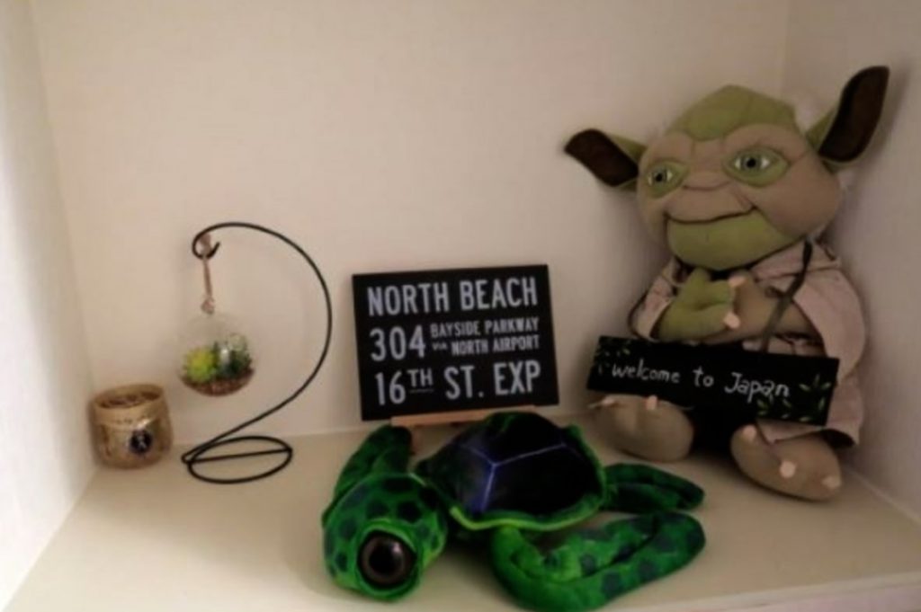 При вході видно, що японці будують квартири під свій зріст. Доводиться постійно нахиляти голову, щоб не вдаритися об одвірок.Відразу при вході господиня квартири зробила для гостей милий куточок з поздоровленням.